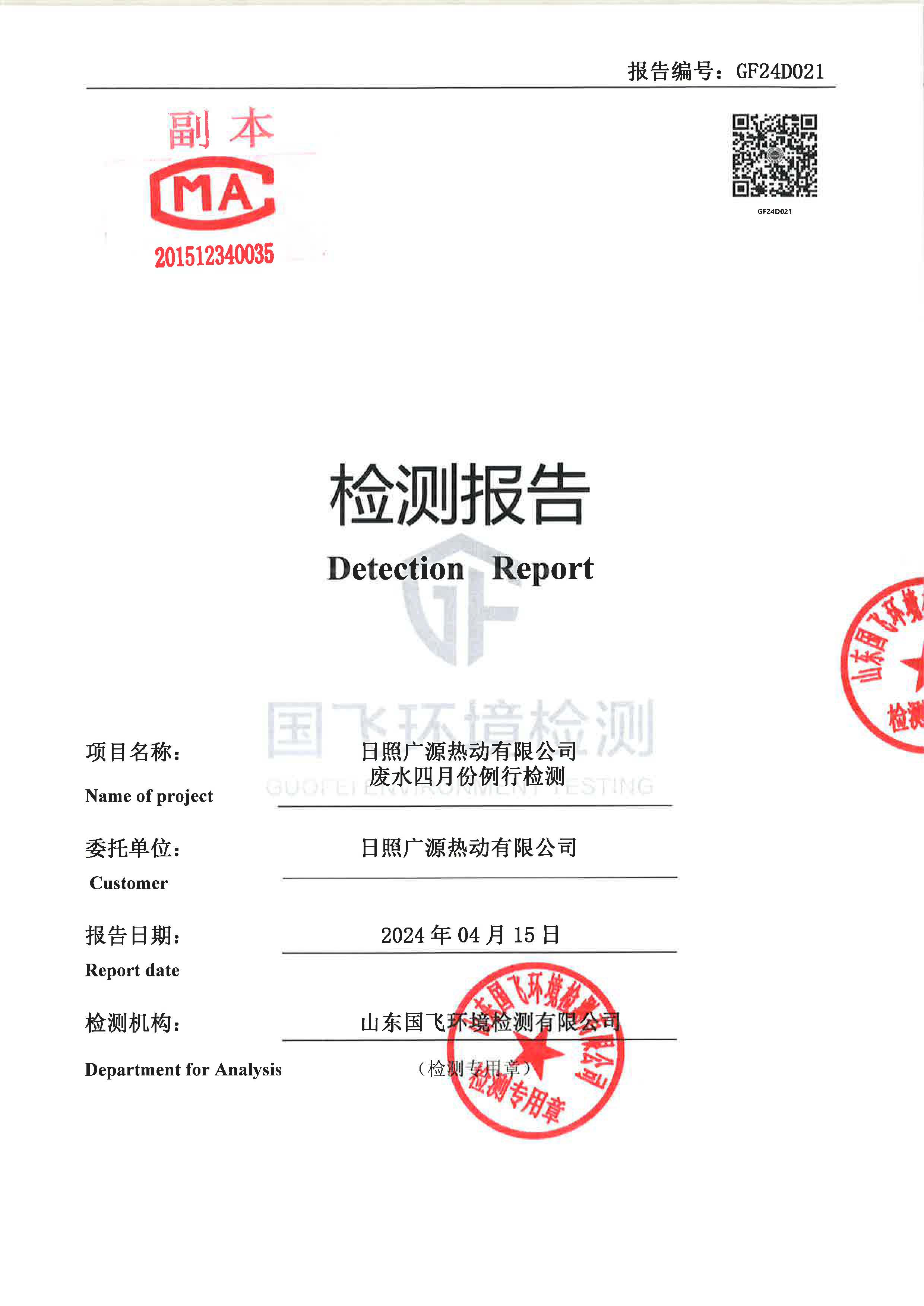 2024年4月污水監(jiān)測報(bào)告